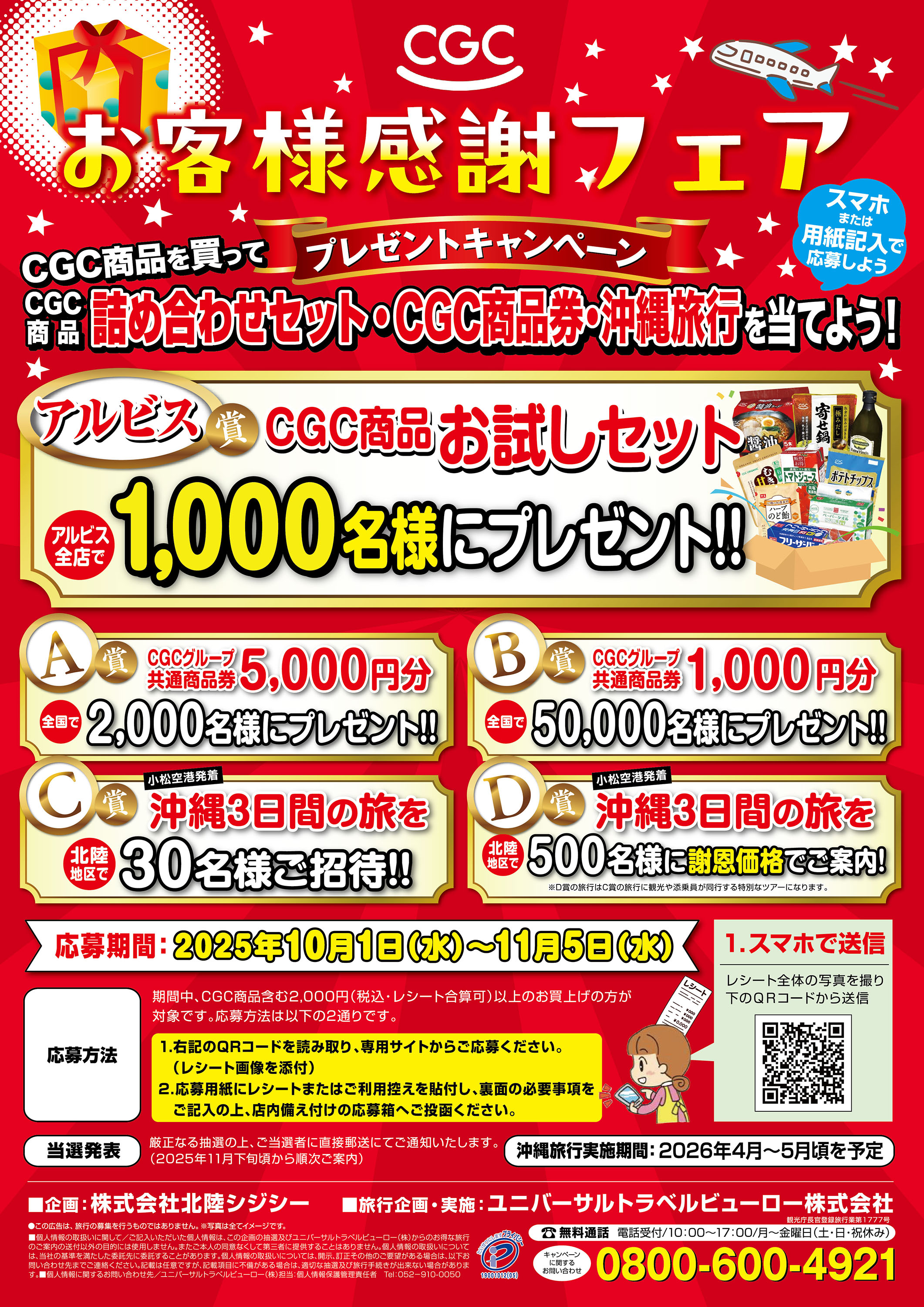 「CGCお試しセット」や「沖縄旅行」を当てよう♪