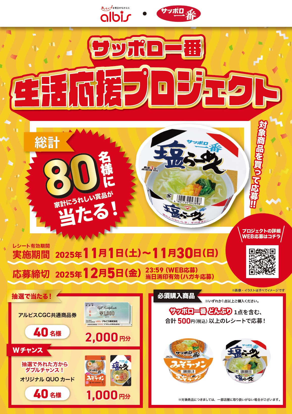 アルビス・サンヨー食品「サッポロ一番 生活応援プロジェクト」