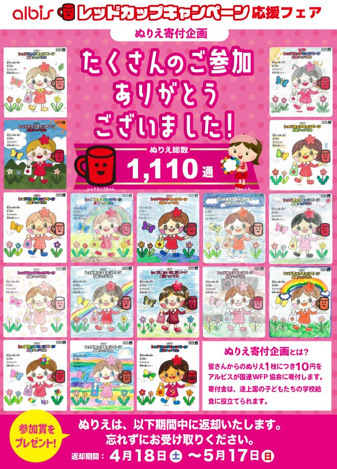 「アルビス レッドカップキャンペーン応援フェア」ぬりえ寄付企画結果発表!