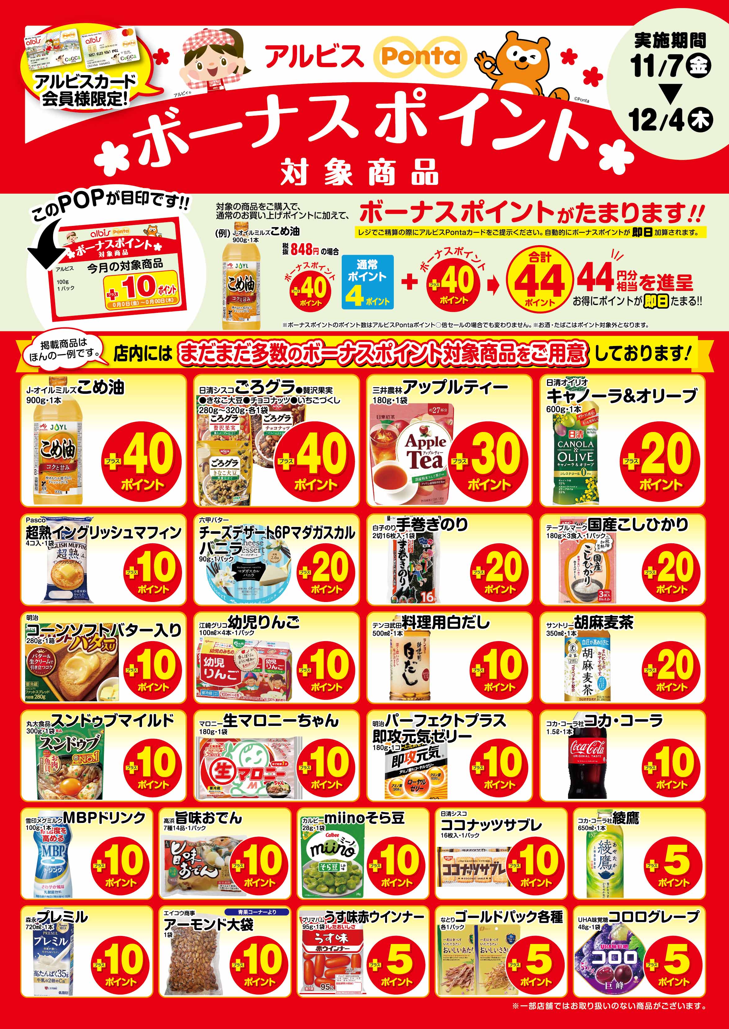 アルビスPontaカード会員様限定!今月のボーナスポイント対象商品はこちら♪