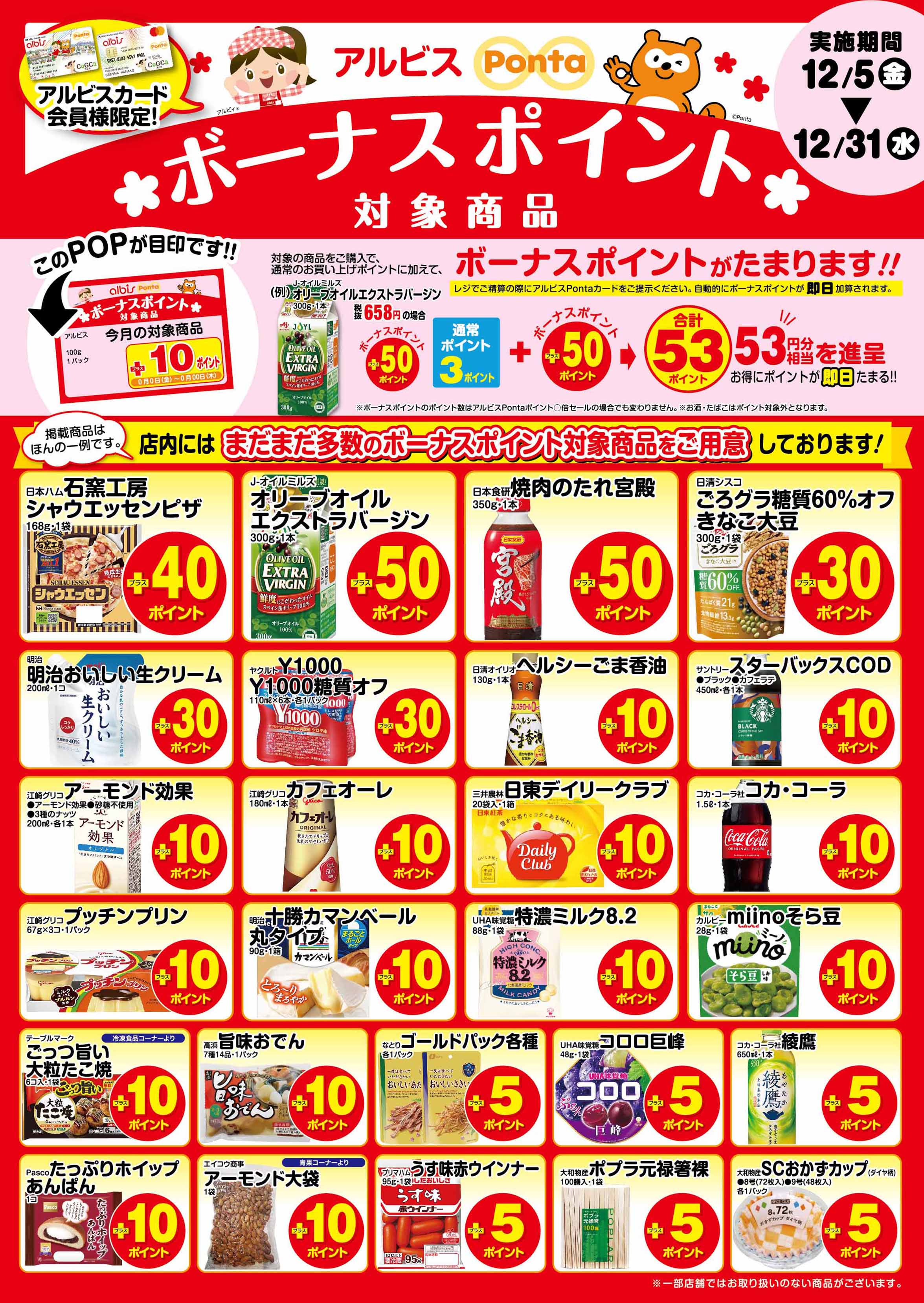 アルビスPontaカード会員様限定!今月のボーナスポイント対象商品はこちら♪